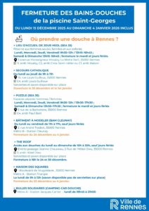 Situé dans la piscine Saint Georges à Rennes, ils se composent d’une vingtaine de douches et de deux salles de bains avec baignoire.